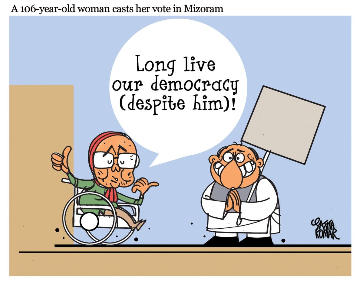 In Deccan Herald, Sajith Kumar has a take on the 106-year-old woman voter in Mizoram, seemingly lauding her unwavering faith in Indian democracy despite the country’s politicians.