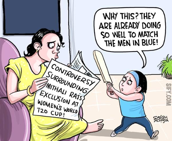 In Sify, Satish Acharya takes a jibe at the crisis in the Indian Women’s cricket team, over the dropping of Mithali Raj at the Women’s World Cup T20.