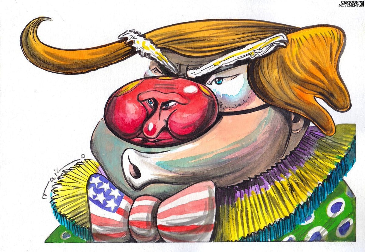 The selected cartoons appeared first in other publications, either in print, online, or on social media, and are credited appropriately.