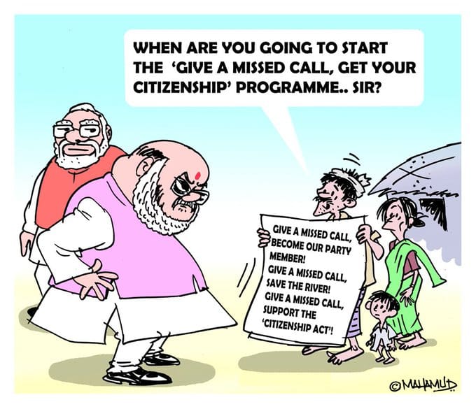 On 3 January, the government released a phone number for people to “register” their support for the Citizenship Amendment Act. Mahamud satirises the government’s attempts at garnering support for the contentious bill.