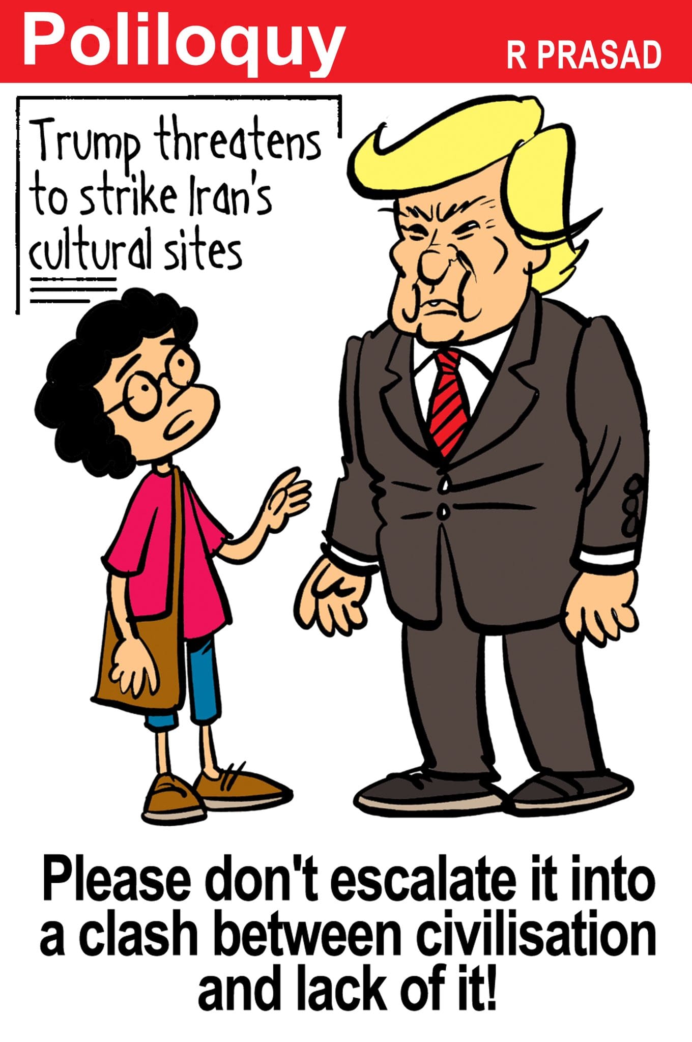 R Prasad pokes fun at Donald Trump’s recent tweet threatening an attack against Iran’s cultural heritage.