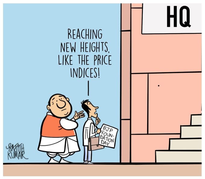Sajith Kumar links the BJP’s celebration of its 42nd Foundation Day on 6 April with the heights that fuel prices are touching.