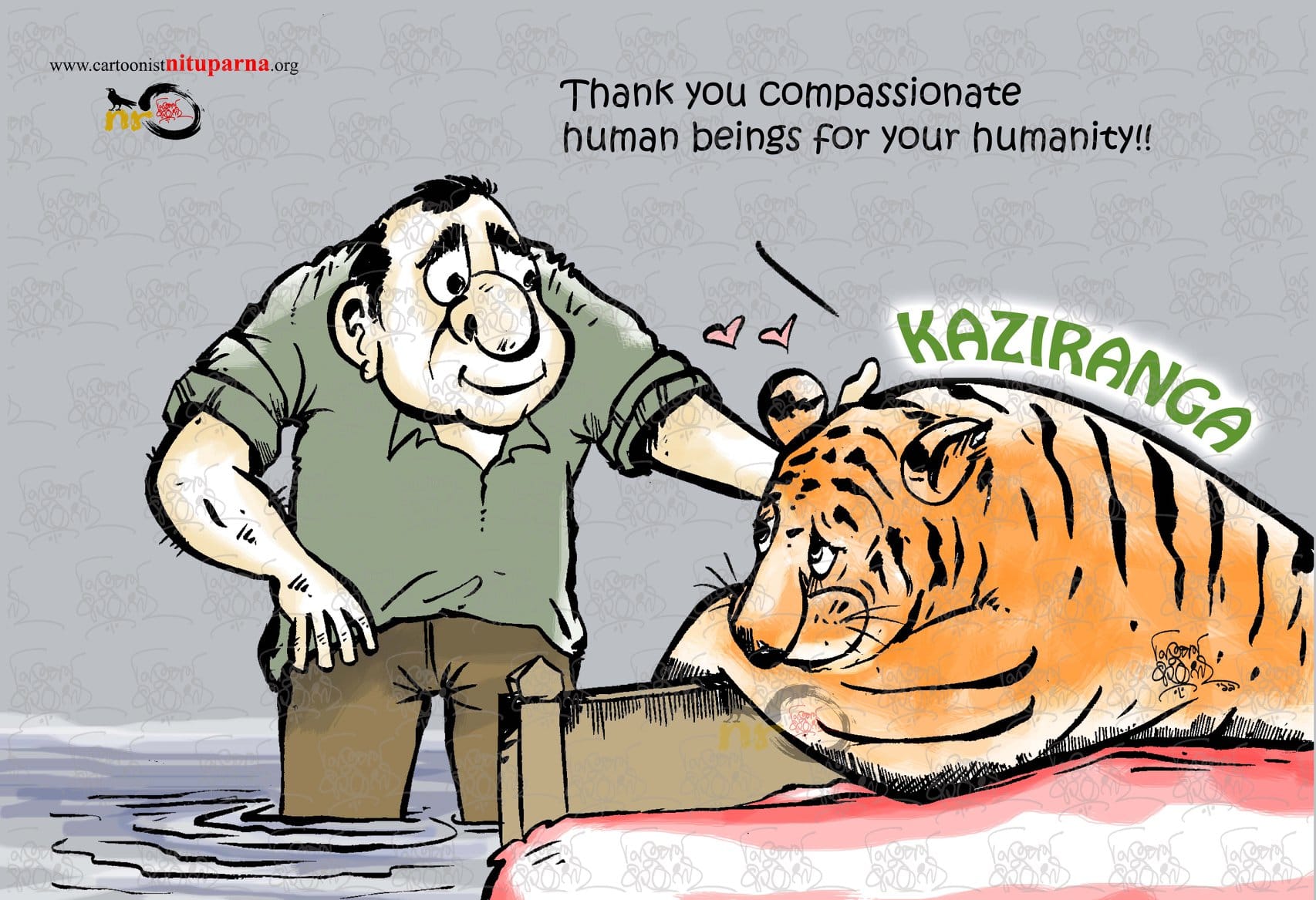 Nituparna Rajbongshi draws attention to the wildlife distress in Kaziranga National Park, as Assam battles floods. With 90 of the sanctuary submerged in water, a tiger lit up social media after a photograph of it taking refuge in a shop went viral.