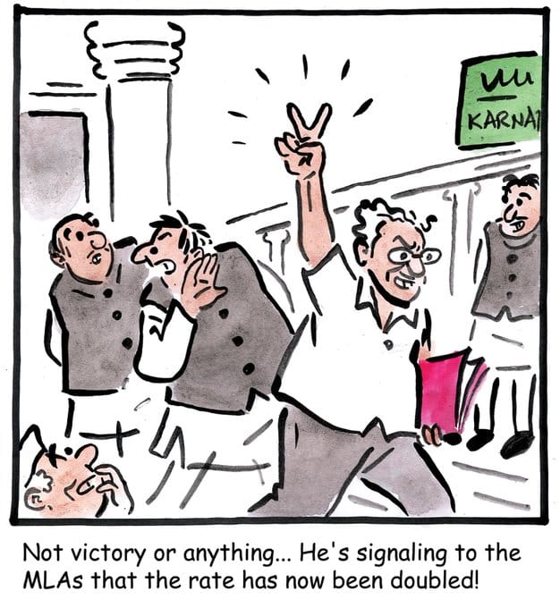In today’s featured cartoon,Manjul refers to the nataka in Karnataka, after another delay in the trust vote, in which the Congress-JD(S) government was meant to prove its majority.