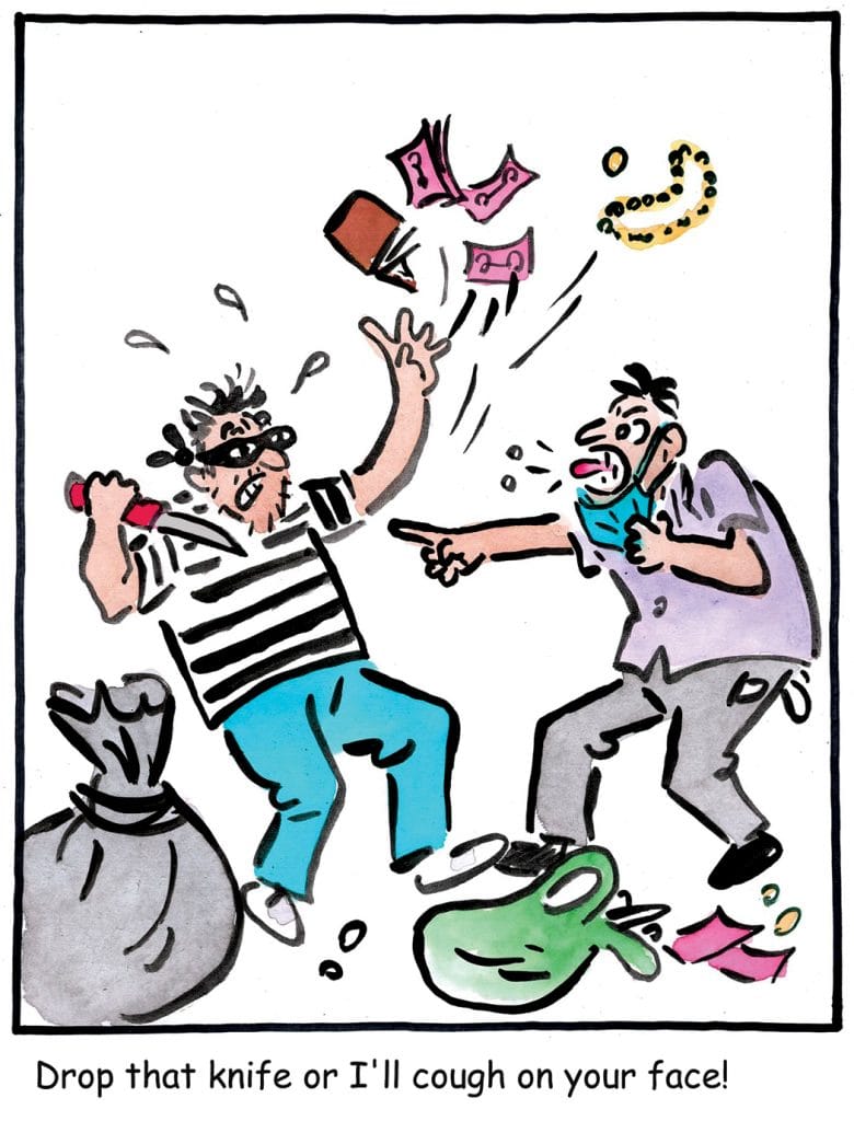 A person sneezing or coughing seems much more dangerous than a knife-wielding man in times of a pandemic, hints Alok Nirantar.