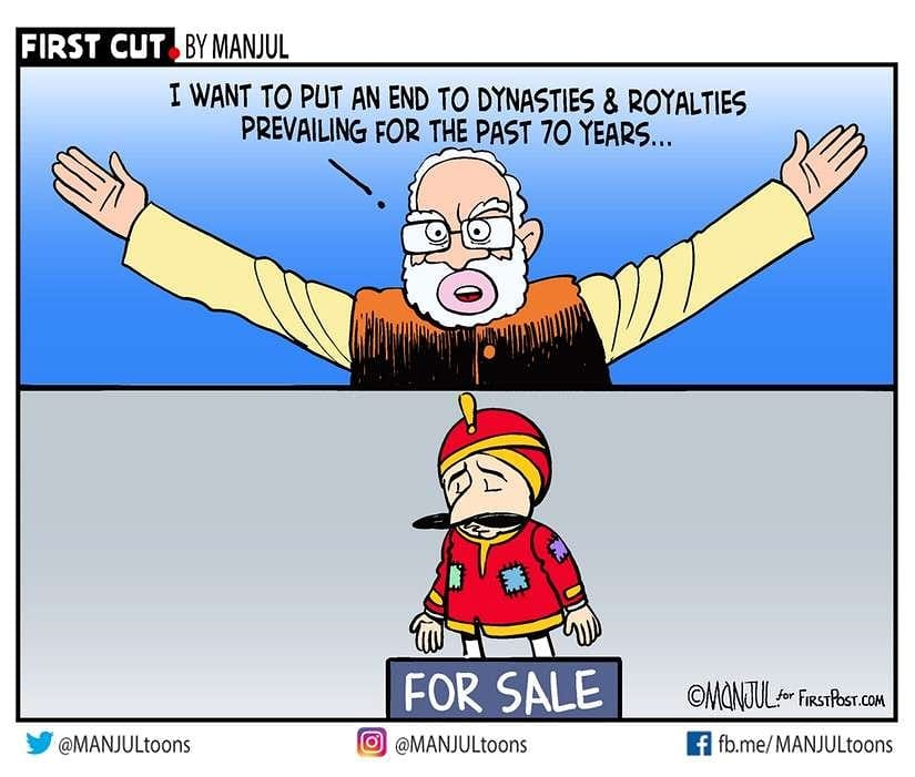 In yet another sardonic take on the Air India sale, cartoonist Manjul reminds us that Narendra Modi has always been averse to dynasties.
