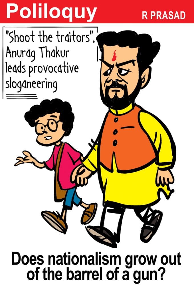 Sajith Kumar presents his theory on the origin of the tasteless slogan, recently used by Union Minister of State for Finance Anurag Thakur, “Desh ke gaddaro ko, goli maaro saalo ko” (Shoot the traitors of the country).