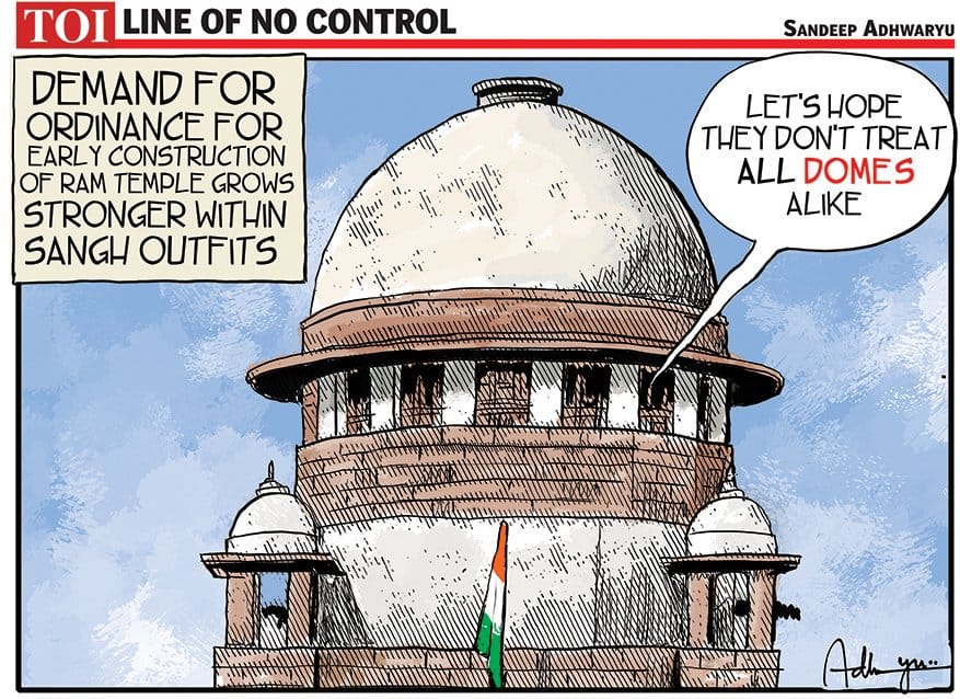 In The Times of India, Sandeep Adhwaryu takes a dig at the growing clamour within the Sangh for an ordinance on Ayodhya in the backdrop of the Supreme Court’s decision to push the hearings in the title suit to January 2019.