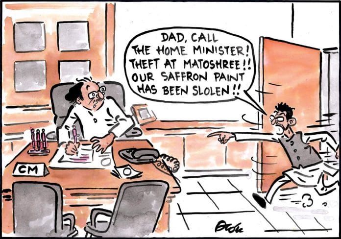 In today’s featured cartoon, Alok Nirantar pokes fun at Maharashtra chief minister Uddhav Thackeray and his son Aaditya Thackeray, also a cabinet minister, after the chief minister said that even though he has taken a new political path, his commitment to ‘saffron’ remains the same.