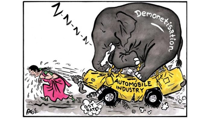In today’s featured image, Alok Nirantar suggests that demonetisation and GST have had an effect on the struggling automobile industry.