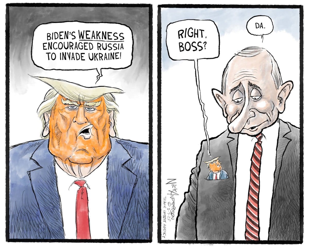The selected cartoons appeared first in other publications, either in print, online, or on social media, and are credited appropriately.