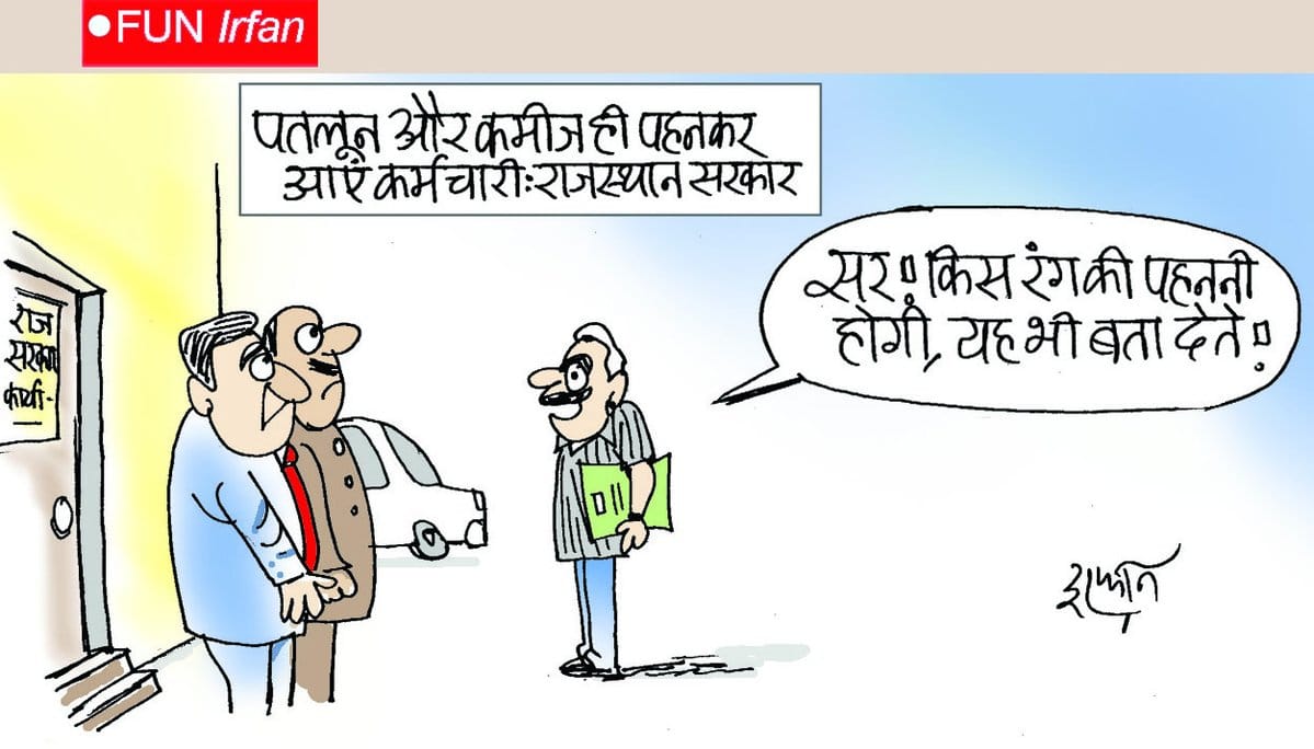 Irfan pokes fun at the Rajasthan labour department’s directive that employees should not report to work in jeans and t-shirt.
