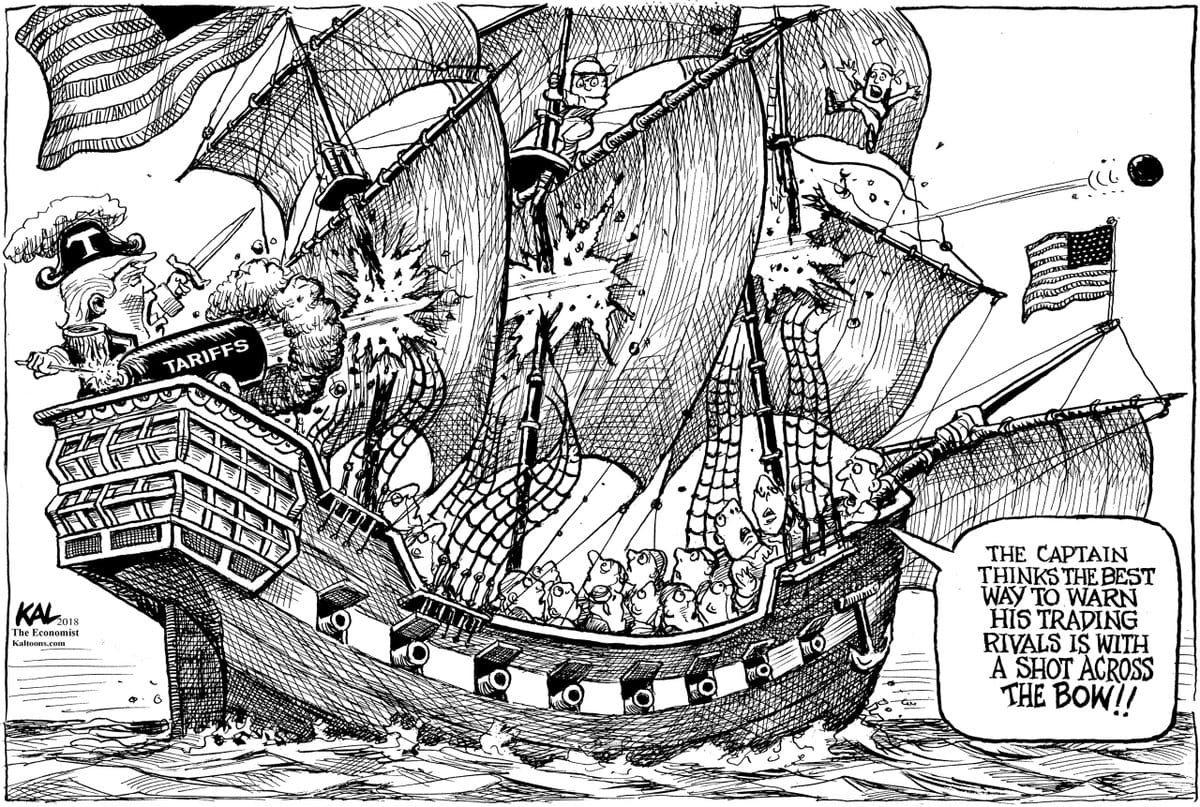 Lately, Donald Trump has been in the line of fire in the midst of his trade war. From India, Canada to even the European Union, his ‘war ship’ is sparing none, illustrates Kevin Kal Kalla for The Economist.