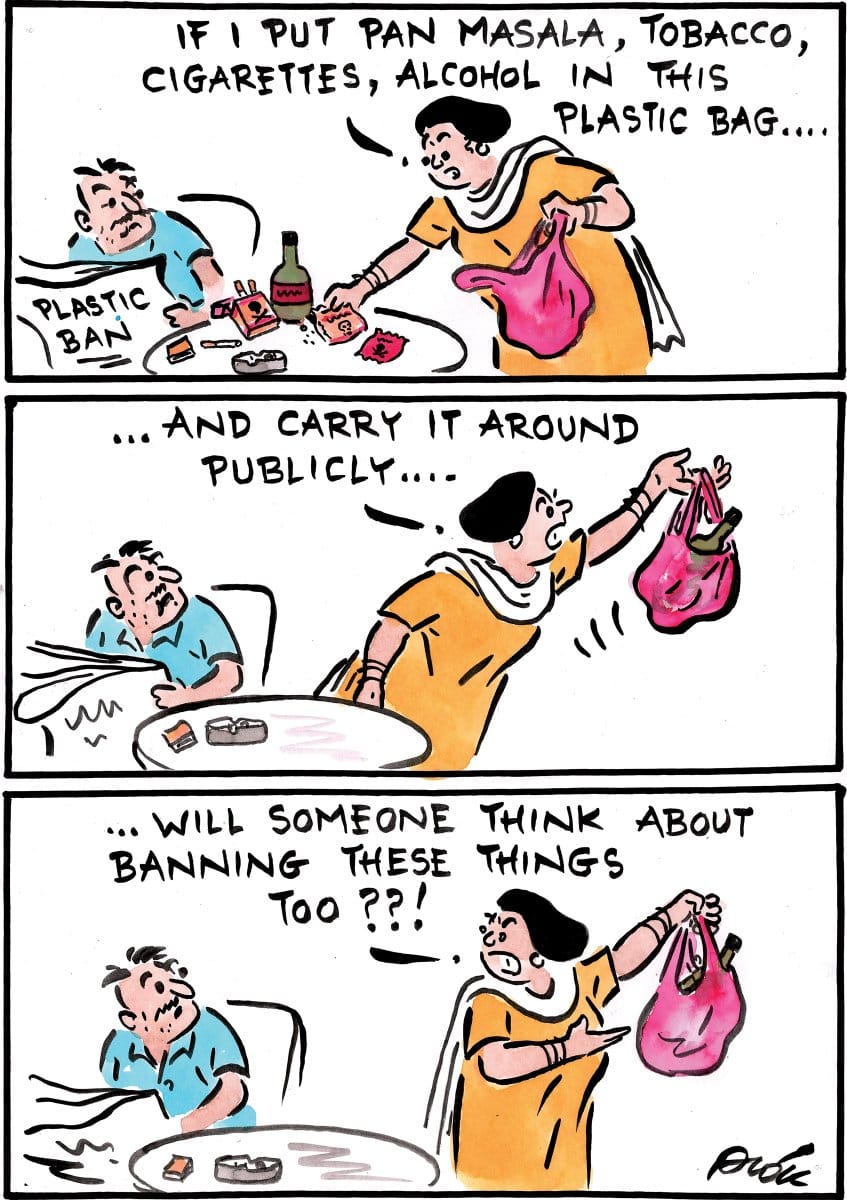 Maharashtra’s ban on plastic took effect Saturday. For first-time offenders, the fine will be Rs 5,000, for second-time offenders, Rs 10,000, and those who violate it for the third time, Rs 25,000 along with three months’ imprisonment. However, as Alok Nirantar illustrates for the Sakal Media Group, a number of far more harmful products still remain easily available in the markets.
