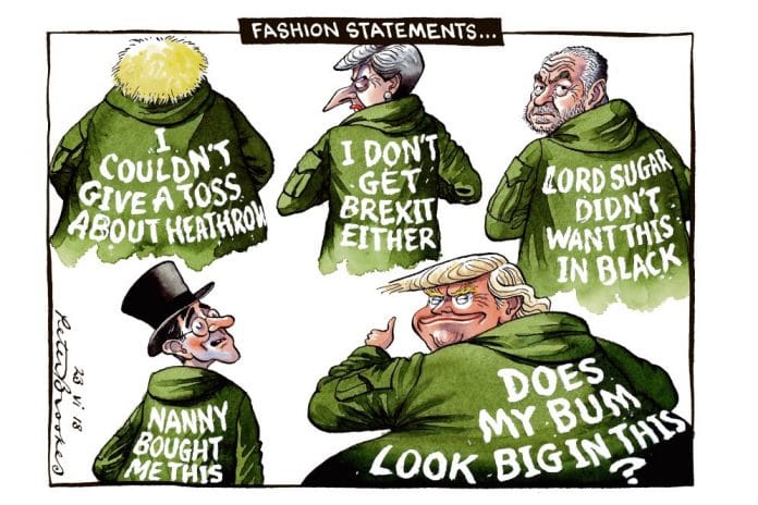 In a similar vein, Peter Brookes, for The Times, comments on other callous ‘fashion statements’ world leaders could makes through their jackets.