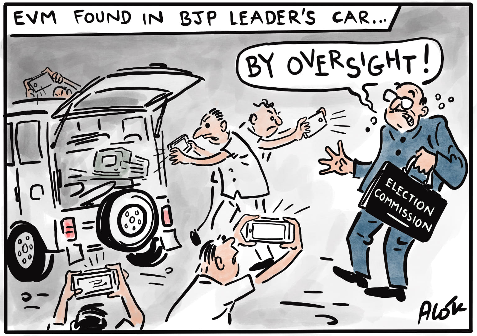 Alok Nirantar takes a dig at the BJP and the Election Commission after an EVM was found in a car that belonged to a BJP candidate in Assam.