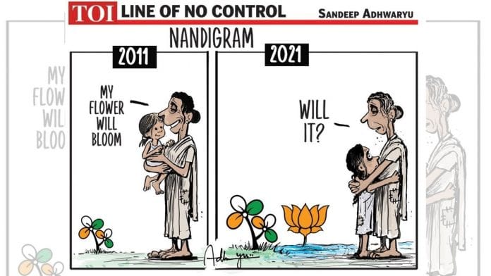 In today’s featured cartoon, Sandeep Adhwaryu illustrates the last decade of the Trinamool Congress’ rule in West Bengal and the recent rise of the BJP, amid the ongoing assembly elections there.