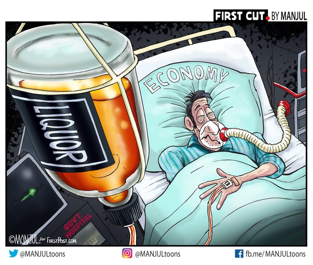 Manjul illustrates the heavy excise duty levied on the purchase of alcohol as something that will boost the economy.