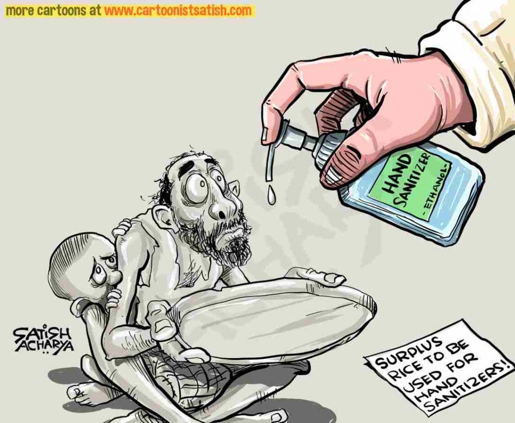 With ‘surplus’ rice being used to make hand sanitisers, Satish Acharya wonders what we can put on the poor’s plate.