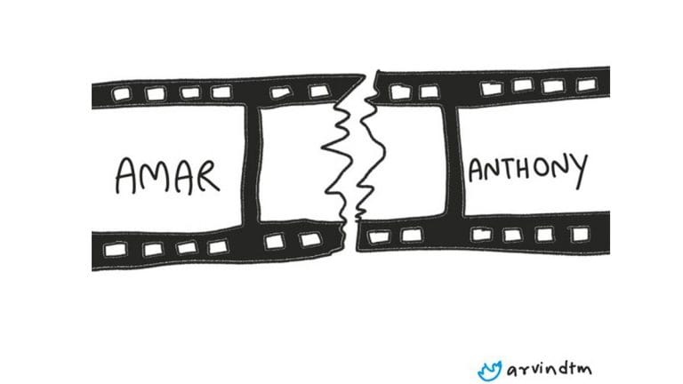 Aravinda Tegginamath comments on the communal disharmony in the country by invoking the 1977 Hindu film Amar Akbar Anthony.