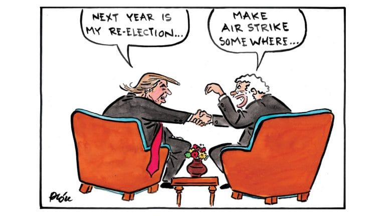 Alok Nirantar caricatures the bilateral meeting between Prime Minister Narendra Modi and US President Donald Trump on the sidelines of G-20 summit in Japan in July. With Trump looking to secure a re-election, the cartoonist illustrates Modi’s ‘striking’ advice to him.