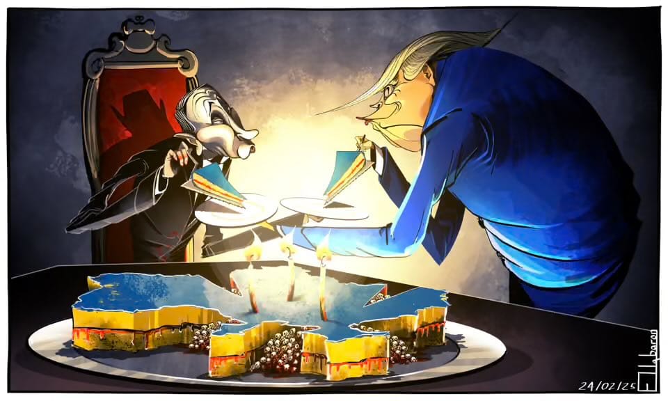The selected cartoons appeared first in other publications, either in print, online, or on social media, and are credited appropriately.