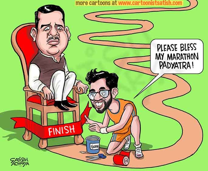 Satish Acharya takes a dig at Aditya Thackeray, the Shiv Sena’s youth leader and son of party chief Uddhav Thackeray, who has embarked on a 4000-km Maharashtra tour, aimed at launching him as the party’s chief ministerial face.