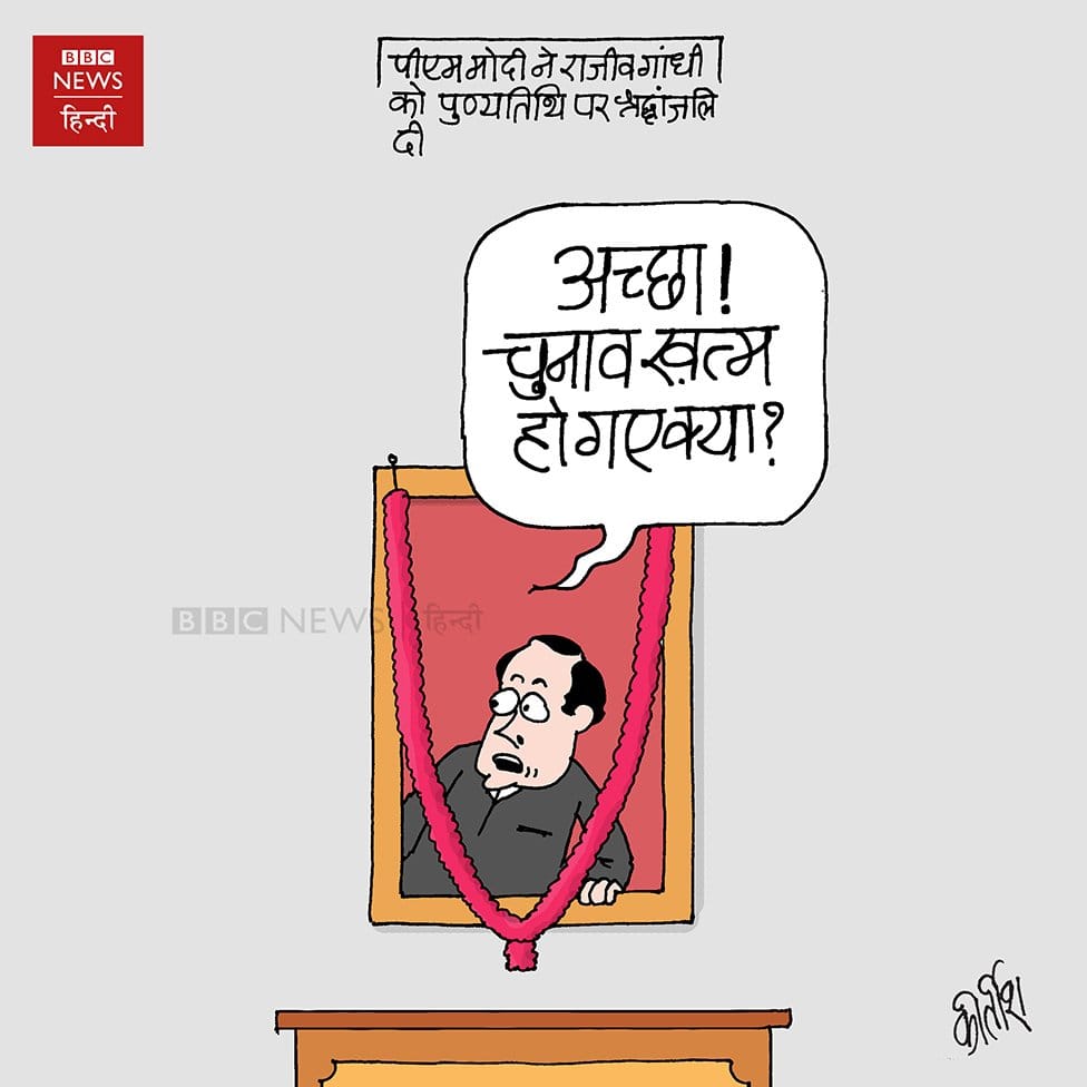 Kirtish Bhatt, for BBC News, takes a potshot at Prime Minister Narendra Modi for paying tributes to former Congress PM Rajiv Gandhi on his 28th death anniversary on 21 May. Modi had allegedly tried to make Rajiv Gandhi and his legacy an election issue.