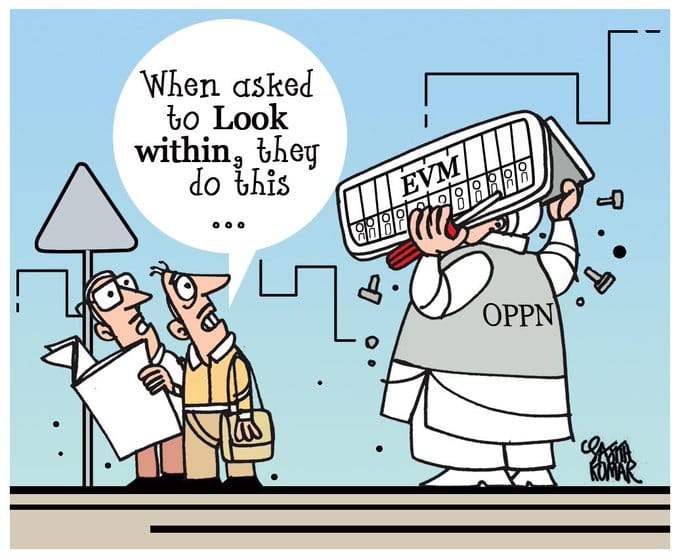 Sajith Kumar, for Deccan Herald, takes a swipe at the opposition parties for invariably alleging tampering of electronic voting machines.