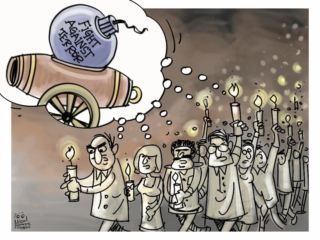 Thousands of people all over India conducted candle-light vigils to express their solidarity with the CRPF personnel who were killed in Pulwama. However, Mika Aziz shows that the people taking part in these peaceful marches also have revenge on their minds, and are thinking of lighting cannons with their candles.