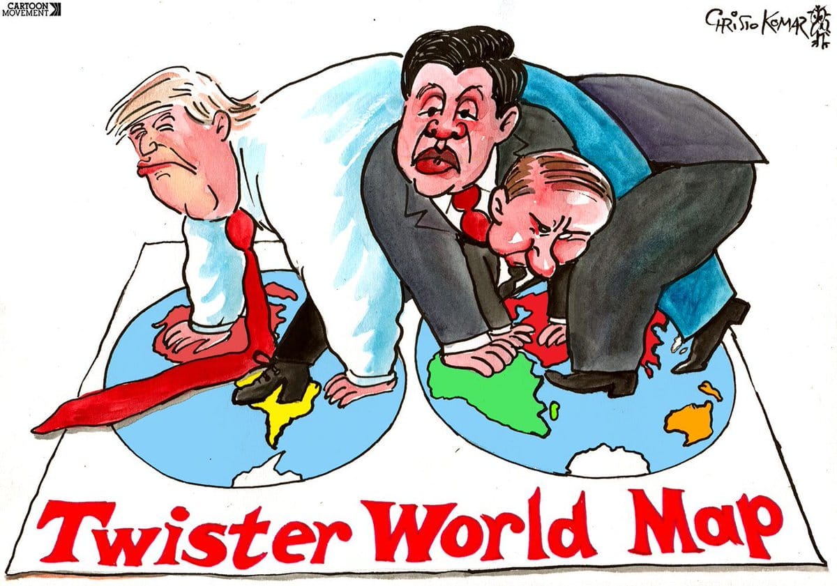 The selected cartoons appeared first in other publications, either in print, online, or on social media, and are credited appropriately.