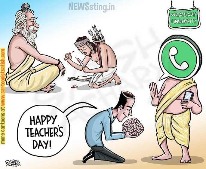 On Teachers’ Day, cartoonist Satish Acharya takes a potshot at the ease with which people these days believe information shared on WhatsApp. Gone are the days, he suggests, when teachers were considered the only true repositories of knowledge.
