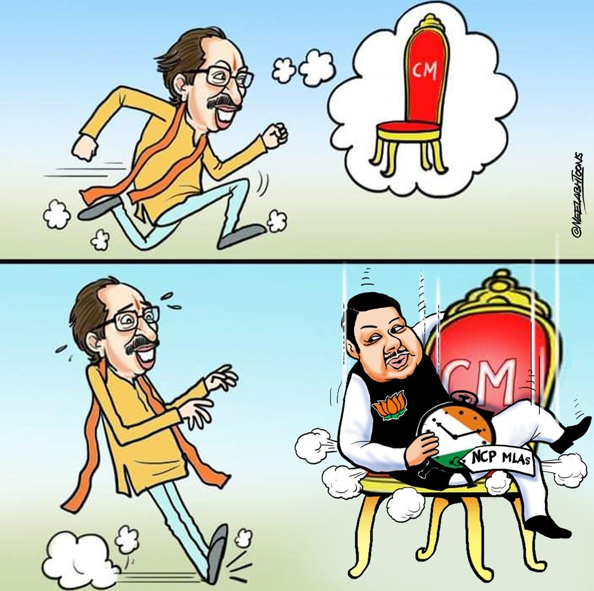 In today’s featured cartoon, Manjul depicts Shiv Sena chief Uddhav Thackeray literally falling through the cracks while making a leap for the Maharashtra chief minister’s seat.
