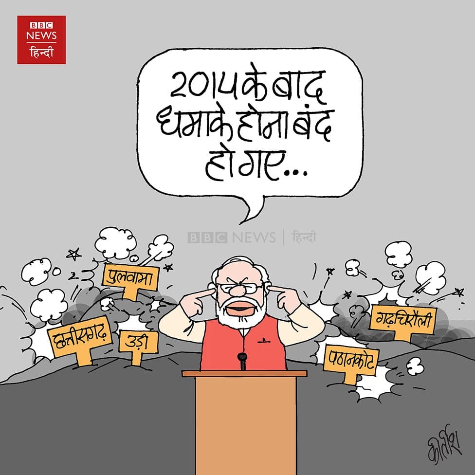 Kirtish Bhatt for BBC News Hindi takes a dig at Prime Minister Narendra Modi’s claim of no major terror attacks during the tenure. On Wednesday, a Maoist attack on a CRPF convoy in Maharashtra’s Gadchiroli left 15 jawans dead.