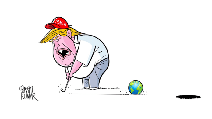 The selected cartoons appeared first in other publications, either in print, online, or on social media, and are credited appropriately.