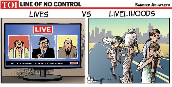 Sandeep Adhwaryu draws a sharp contrast between news anchors who debate on television ‘live’ for hours on end every day and migrants who’ve lost their livelihoods amid lockdown.
