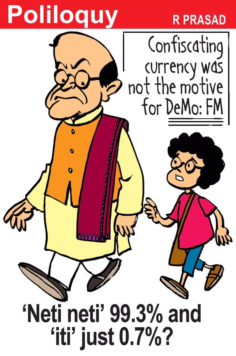 In The Economic Times, R. Prasad remarks 99.3 per cent of demonetised cash returned to the RBI despite finance minister’s claim that confiscation of currency notes was not its objective, suggesting it has not yielded the desired results.