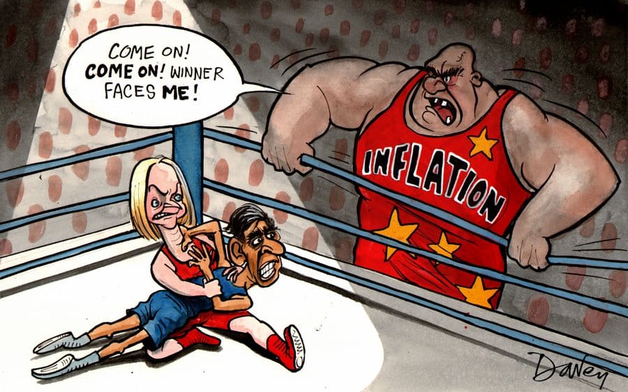 Andy Davey’s illustration refers to the stark inflation warning in the UK. While UK leadership points to ‘real and fast’ solutions in tackling issues with the economy, the Bank of England has predicted that inflation will hit 13.3 per cent in October — the highest rate in over 42 years.