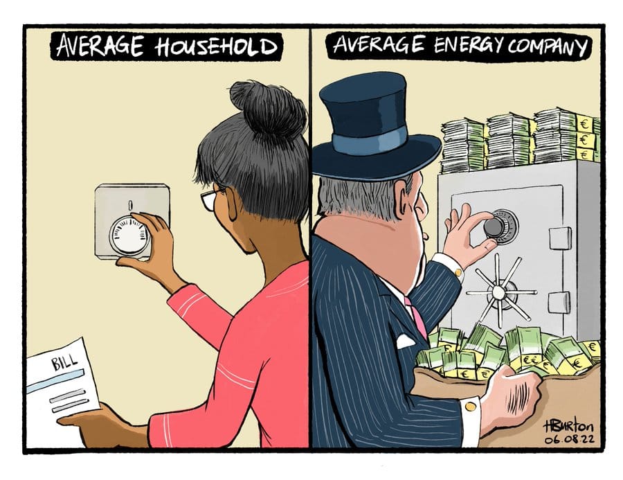 Harry Burton takes a dig at the rising electricity bills that are becoming a burden on consumers in the UK. Meanwhile, a campaign calling for energy bill payers’ strike, to force the government to reduce burden on consumers, has gathered pace.