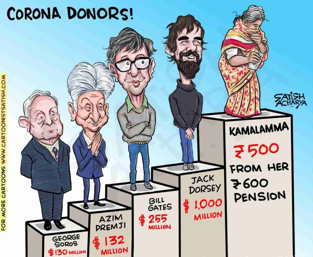 Satish Acharya takes a jibe at the billionares of the world for their relatively miniscule donations towards the coronavirus fund.