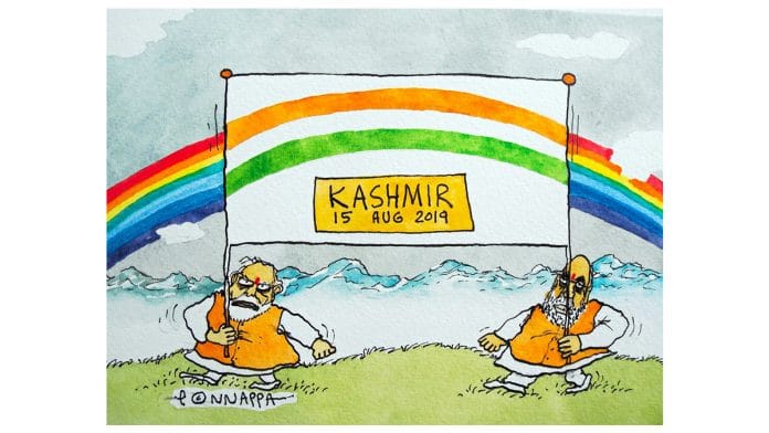 On this Independence Day, Nala Ponnappa draws attention to Prime Minister Narendra Modi’s recent move to scrap Jammu and Kashmir’s special status, in today’s featured cartoon.
