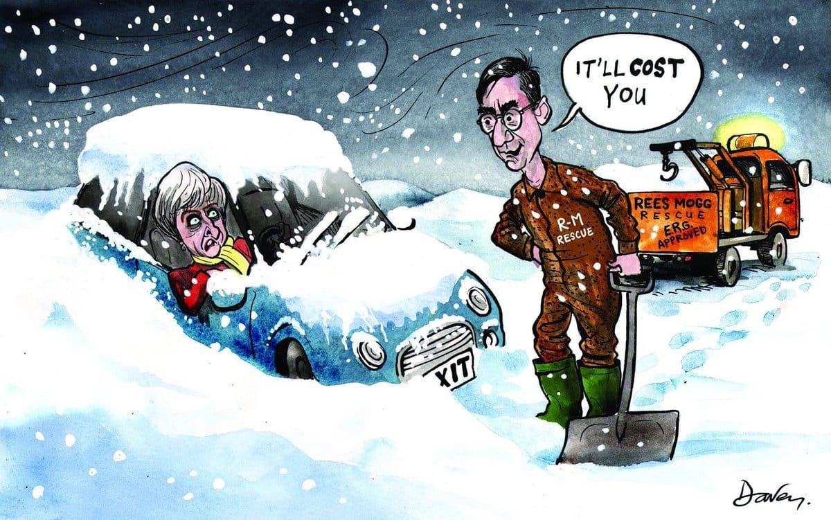 Andy Davey takes a jibe at May and Jacob Rees-Mogg, chairman of the European Research Group, a body of Conservative Party MPs that are firmly in support of Brexit. Rees-Mogg is seen offering ‘conditional support’ to the PM if she is willing to renegotiate a deal on the Irish backstop in Brussels.