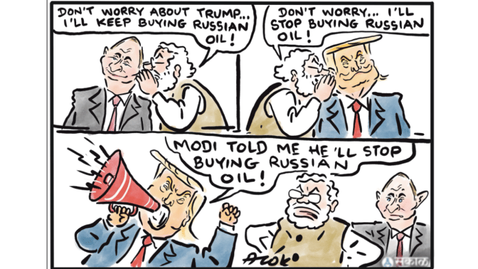 The selected cartoons appeared first in other publications, either in print, online, or on social media, and are credited appropriately.