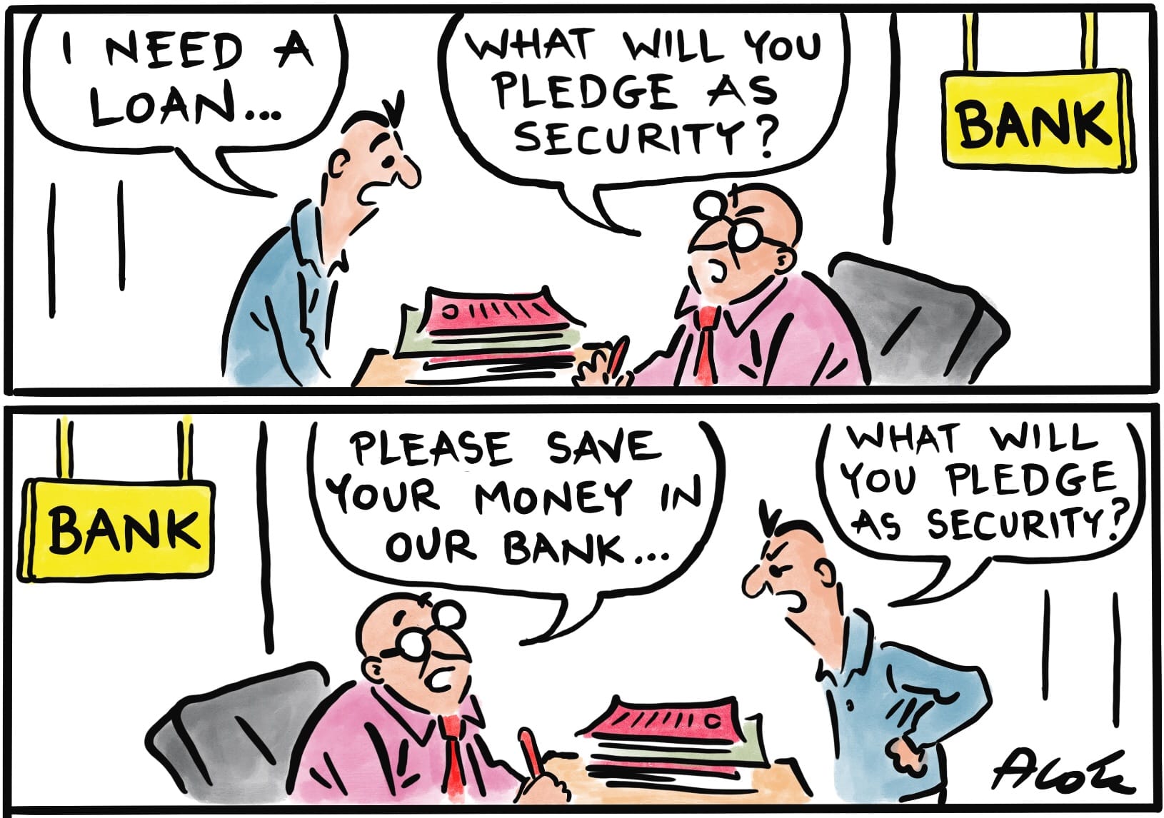 Alok Nirantar’s jibe on the deplorable state of banking in India.