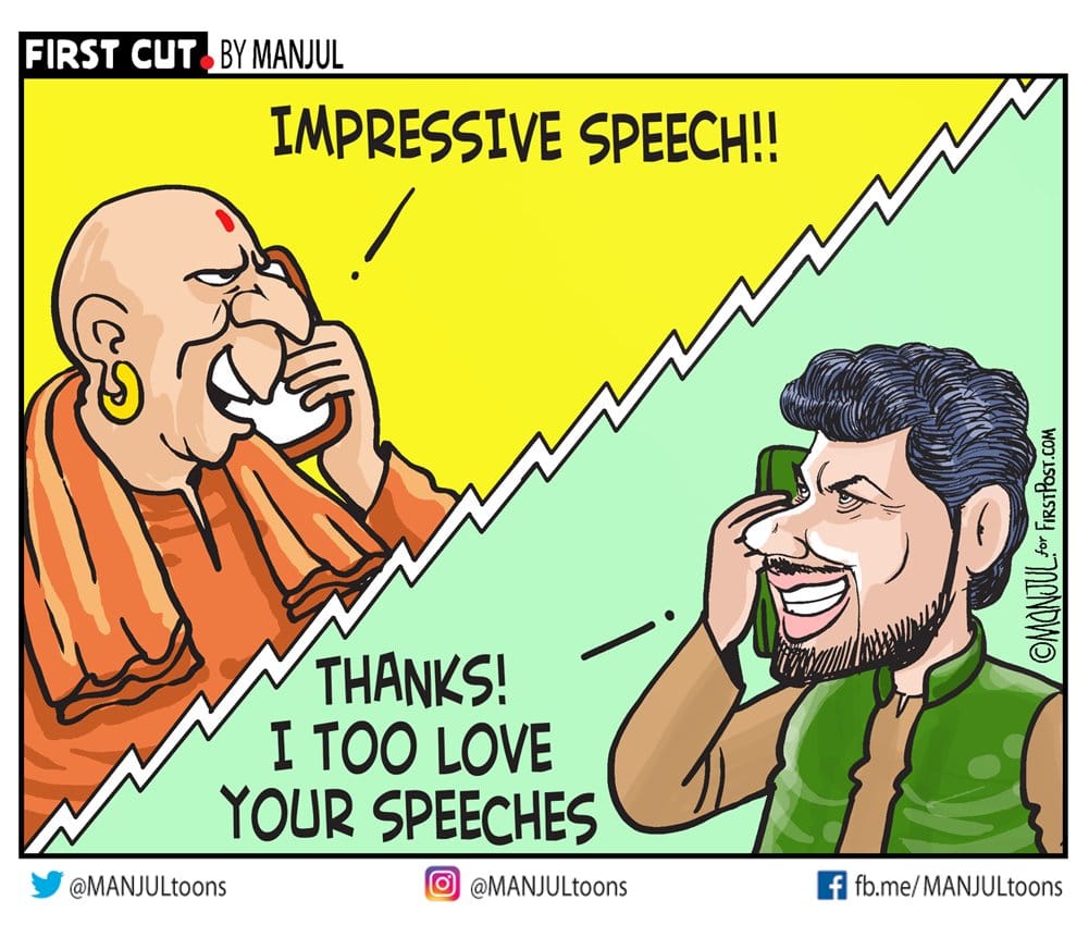 Manjul illustrates how birds of a feather flock together, extremism or fundamentalism of any kind is equally ridiculous.