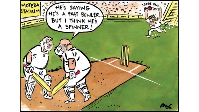 In today’s featured cartoon, Alok Nirantar takes a dig at US President Donald Trump and the coveted US-India trade deal ahead of his visit on 24 February.