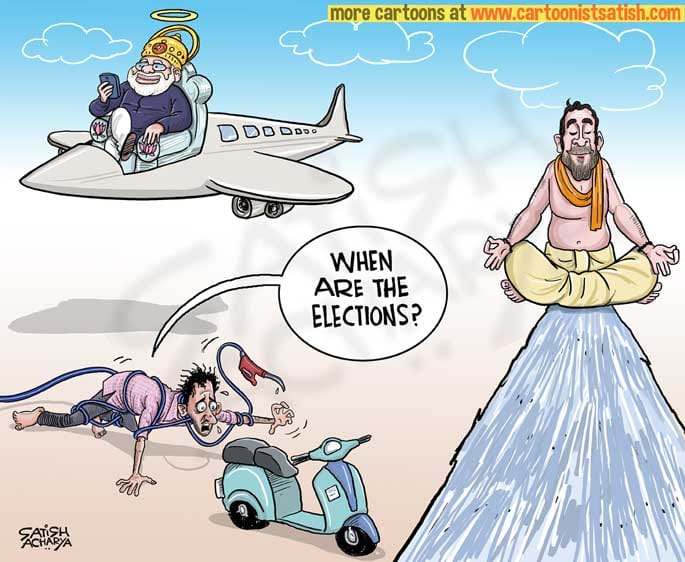 Cartoonist Satish Acharya on the current political narratives that has left out the soaring petrol and diesel prices.