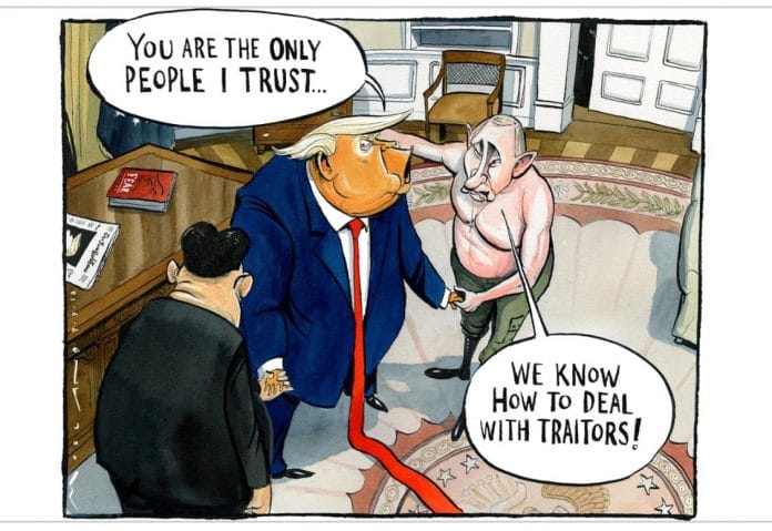 In the lead cartoon, Morten Morland appears to suggest that President Trump has few friends now, in the wake of the anonymous Op-Ed in The New York Times criticising his government.