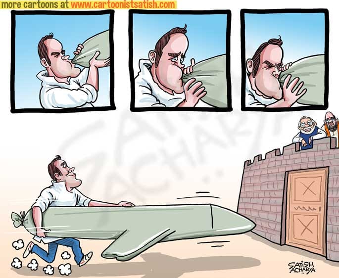 Cartoonist Satish Acharya takes a jibe at Congress chief Rahul Gandhi’s repeated attempts to target the Narendra Modi government over Rafale deal.