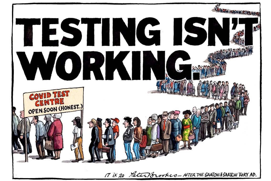 Peter Brookes highlights logistical hiccups in the UK government’s Covid-19 testing strategy.